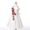 Váy được thiết kế cổ trụ, có thể bẻ thành cổ bèo dễ thương. Váy Sát nách màu trắng phối hoa hồng thêu cực chất. Chất vải kaki lụa rất mềm cho bé.
