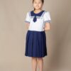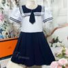 Đồng Phục Học Sinh Đầm Bé Gái Xếp Ly Phối Cổ Vuông
